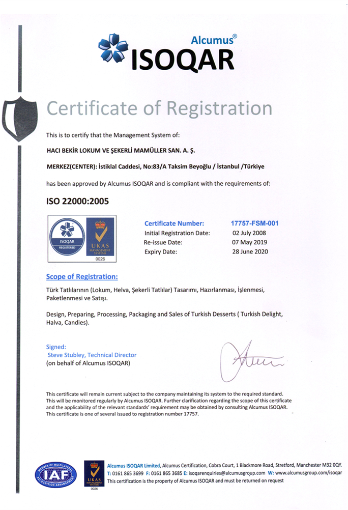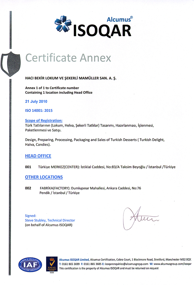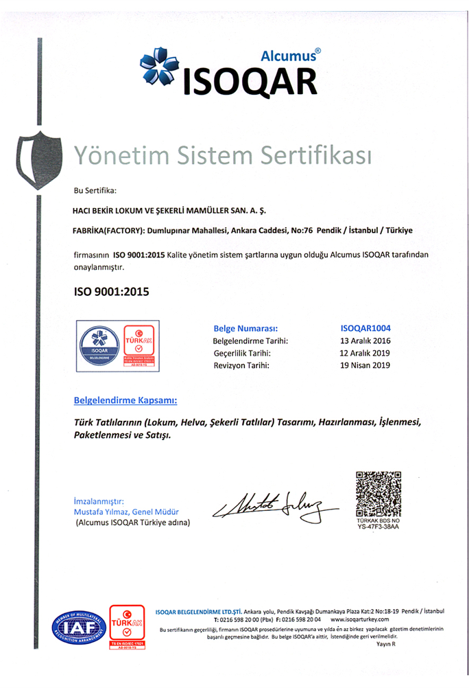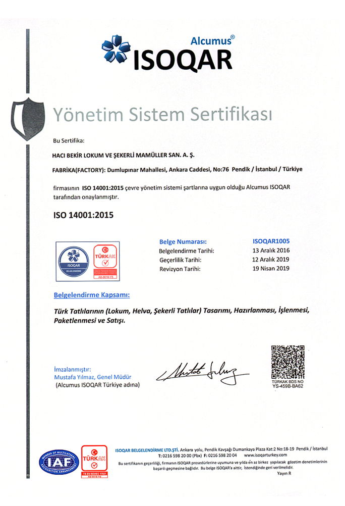 HACI BEKİR will reach the abovementioned target through training the whole staff, ensuring the raising and improvement of awareness, and continuous reevaluation of the Company's Quality, Environmental and Food Safety Policies. We, as HACI BEKİR Company, believe in and promise the realization of these policies and targets in a clean environment and nature.