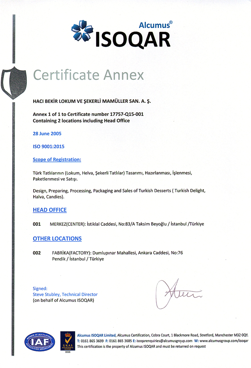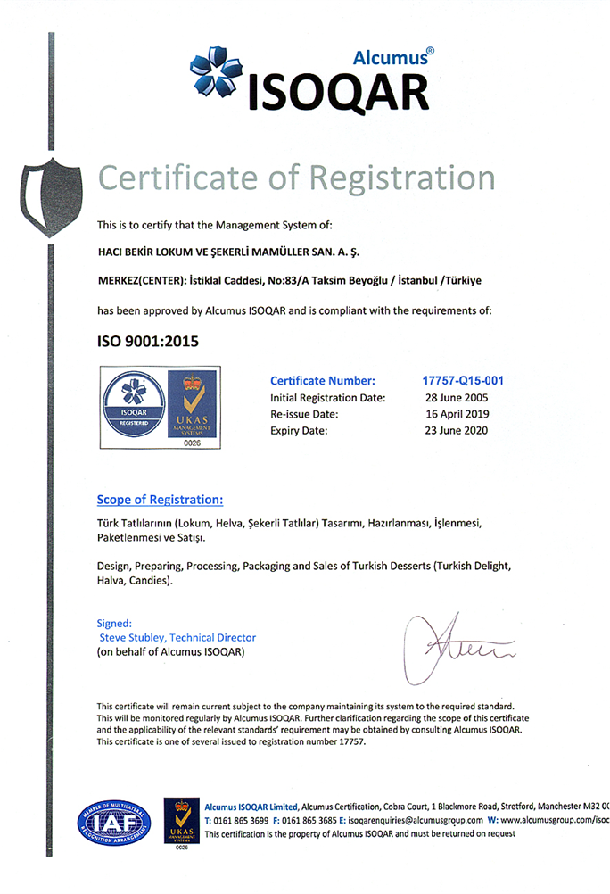 HACI BEKİR Firması, hedeflerini çalışan personelini eğiterek, tüm personelinin bilinçlenmesini sağlayacak ve Kalite, Çevre ve Gıda Güvenliği Politikasını sürekli gözden geçirecektir. HACI BEKİR Firması, bu politika ve hedeflerinin temiz çevre ve doğa içinde tahakkuk edeceğine inanarak bu hususları gerçekleştirmeyi ve geliştirmeyi taahhüt eder.