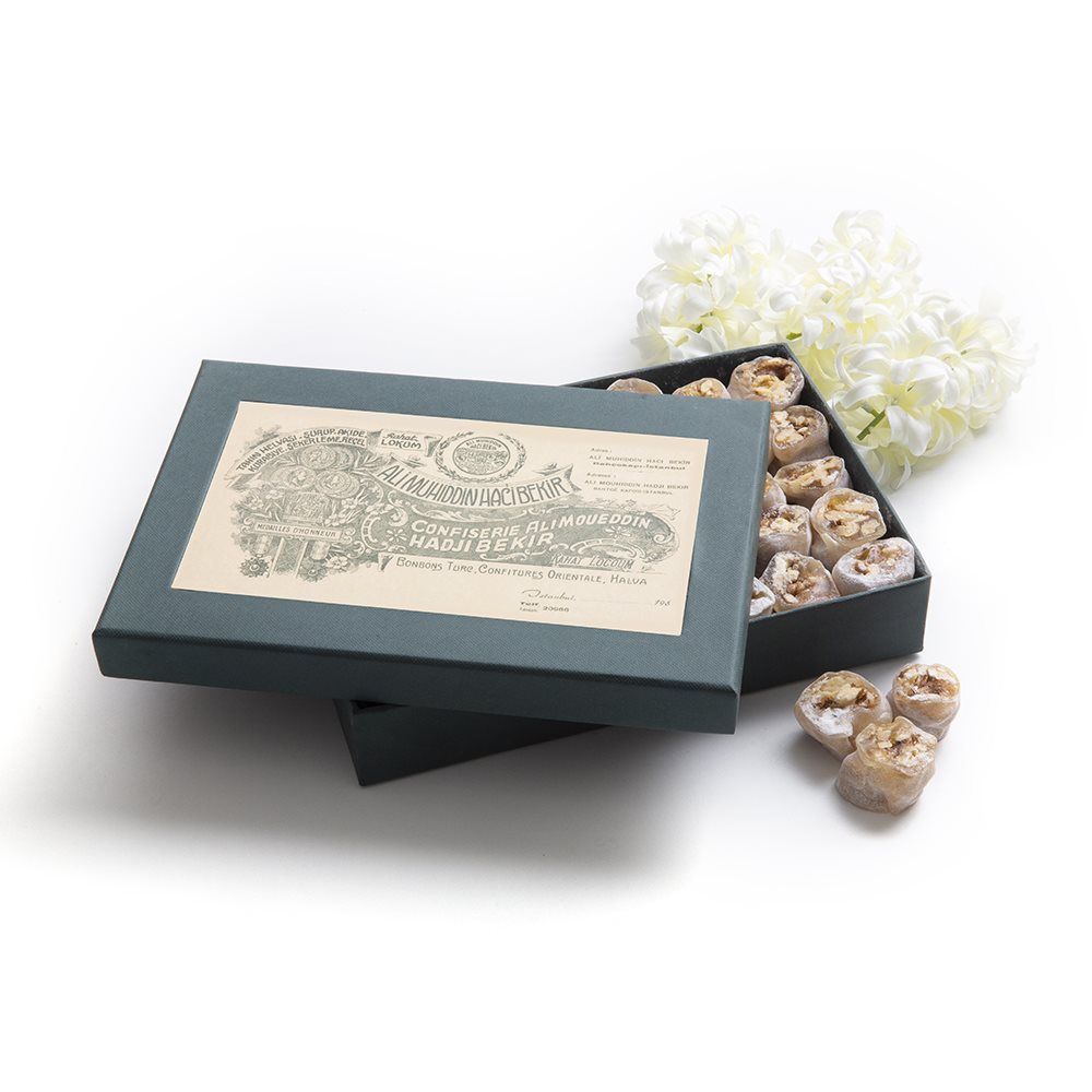 You can’t get enough of this historic taste tenderly prepared with specially chosen walnuts. Hacı Bekir Walnut Lokum, prepared according to its historic formula, is available in standard Hacı Bekir packages or in special packages of your choice.