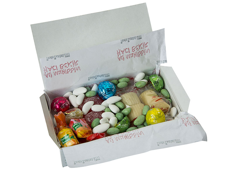 Enjoy and make others feel the spirit of holidays from your childhood with Haci Bekir Bayram Gift box containing classical traditional Turkish Delights (plain, rose, w.hazelnut, w.pistacio), almond paste varieties, chocolate, soft and sugar coated candies.
